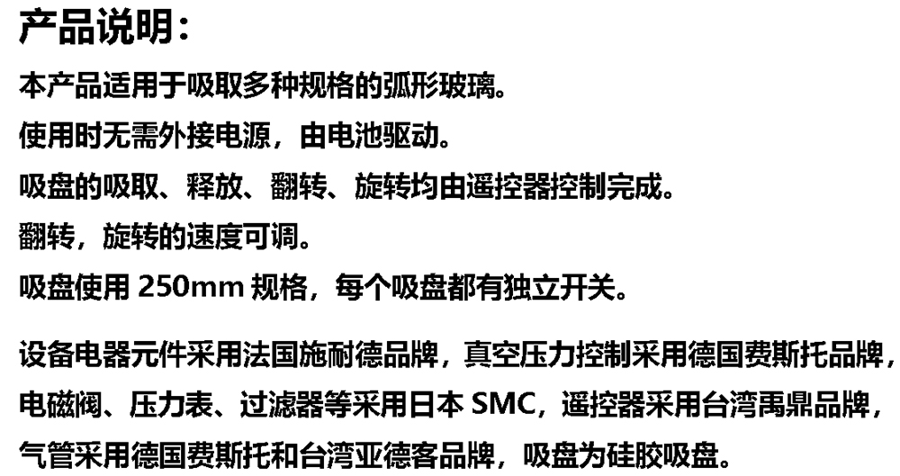 本产品适用于吸取多种规格的弧形玻璃。